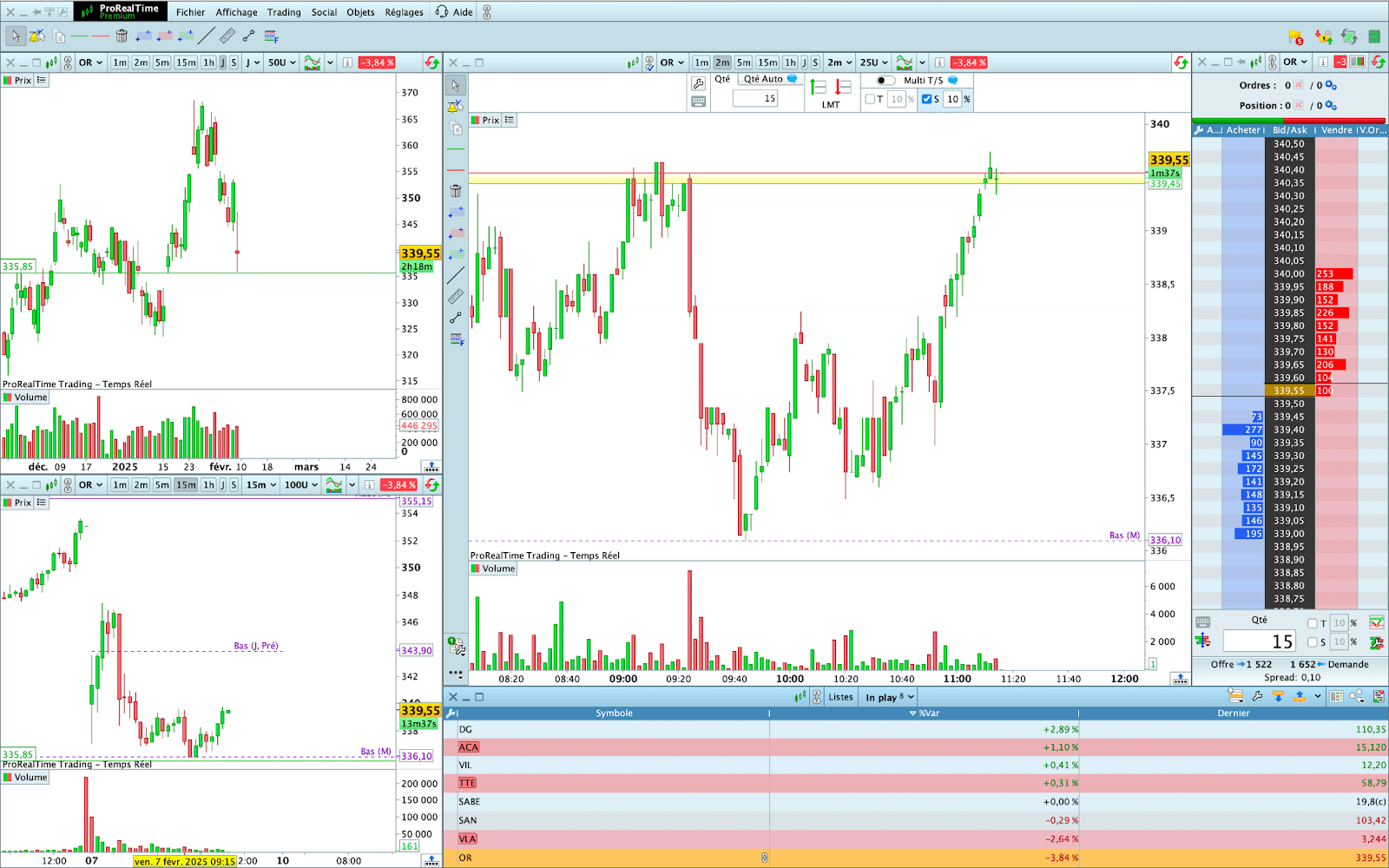 - La tendance intraday (la position par rapport aux 15 premières minutes du jour