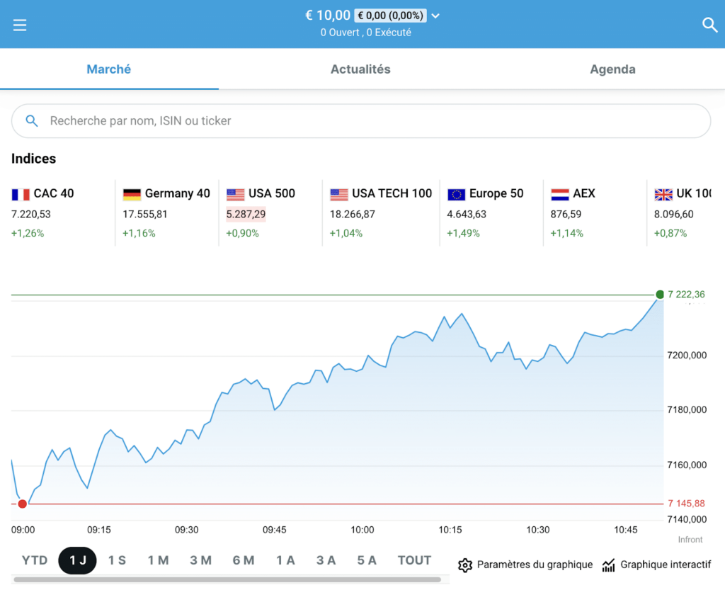 Non. Il n’y a aucun dépôt minimum requis. Vous pouvez ouvrir un compte avec 0€ et commencer à trader avec quelques dizaines d’euros.
