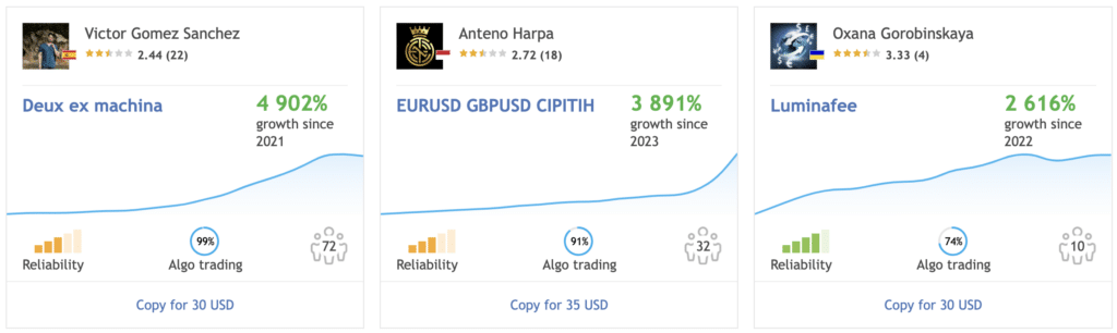 Pour séduire les traders débutants, MetaTrader a mis l’accent dès ses débuts sur le copy-trading et cette composante reste encore aujourd’hui très ancrée dans son ADN.