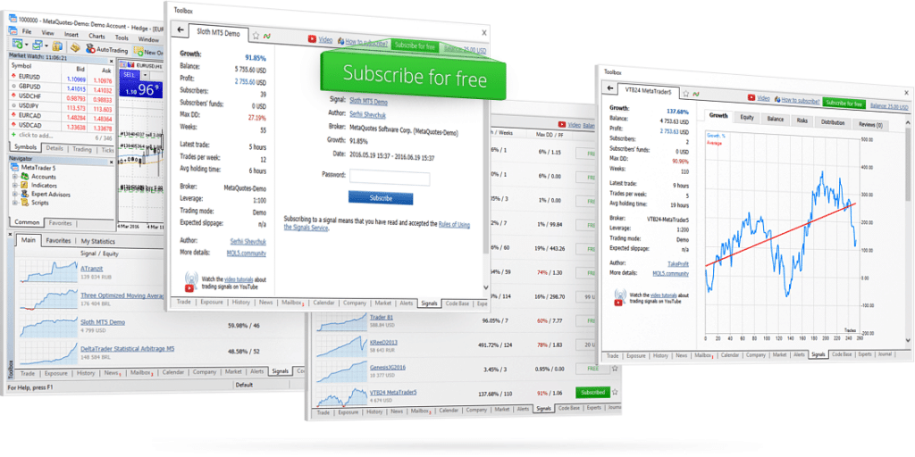 Les utilisateurs de MetaTrader peuvent parcourir une liste de fournisseurs de signaux de trading, comparer leurs performances historiques sur des critères simples (rentabilité, volatilité, maximum drawdown…) et s’abonner en quelques clics pour répliquer les transactions du compte en temps réel.