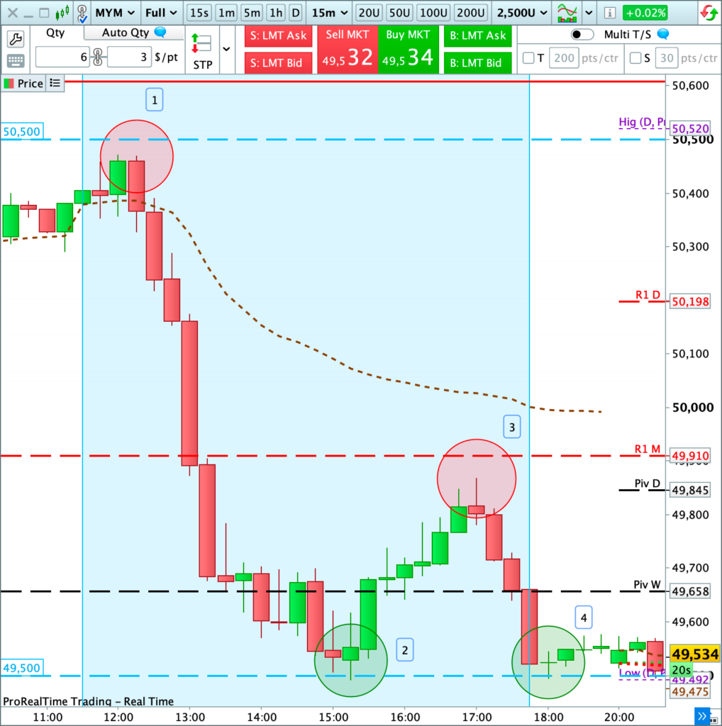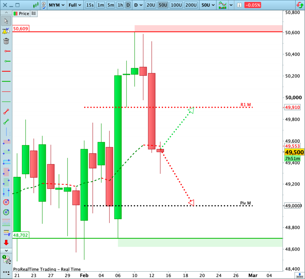 Pour cette séance, je privilégierai donc les trades baissiers avec en ligne de mire le point Pivot mensuel (voire les stop-loss des acheteurs situés sous 48 702 points en deuxième partie de séance si le flux vendeur est au rendez-vous).
