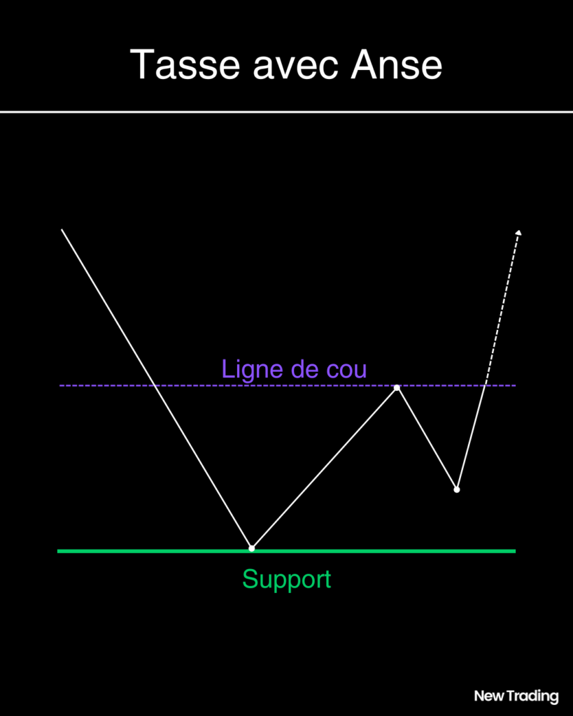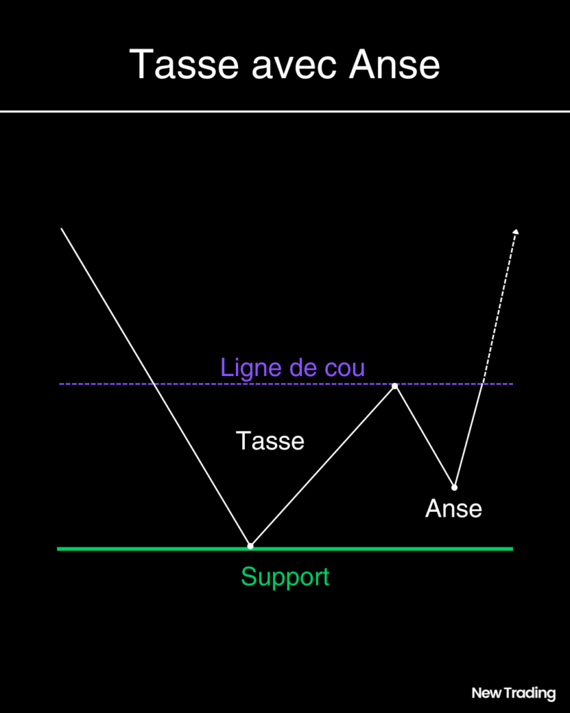 La tasse avec anse est une figure de continuation haussière caractérisée par la formation d’un premier creux majeur (la tasse) suivi d’un creux mineur (la anse).