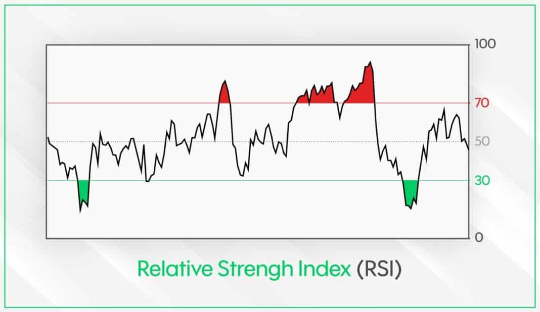 Le Relative Strength Index (RSI) mesure le momentum sur une échelle de 0 à 100. Il indique aux Traders quand un actif est sur-vendu ou sous-vendu. Les Traders utilisent le RSI avec un indicateur de tendance pour repérer les signaux d’achat et de vente basés sur les retraits et les renversements de prix.