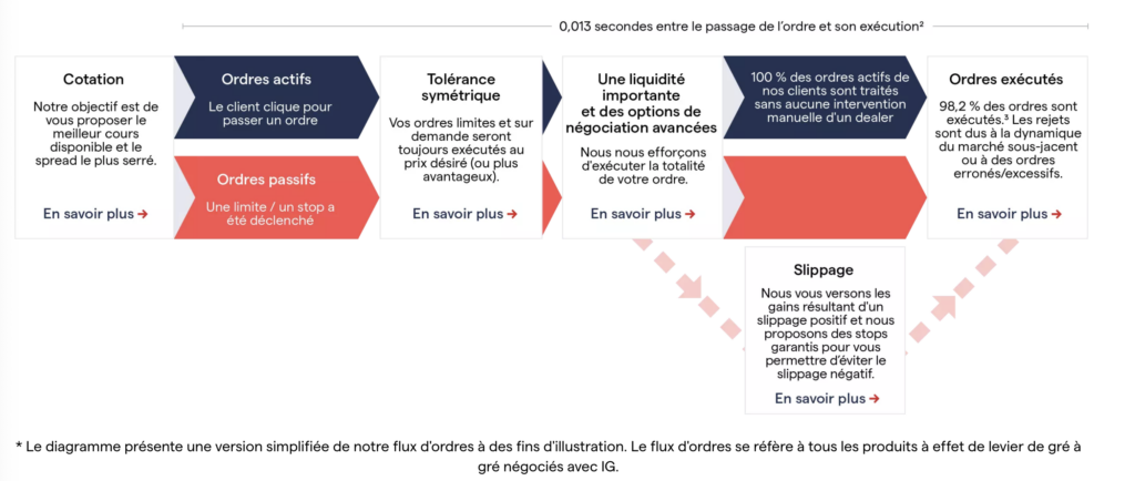 IG investit dans son infrastructure technologique et les résultats sont mesurables. Le courtier revendique 98,2% des ordres exécutés en 0,013 seconde, un standard qu’on trouve habituellement chez les brokers institutionnels.